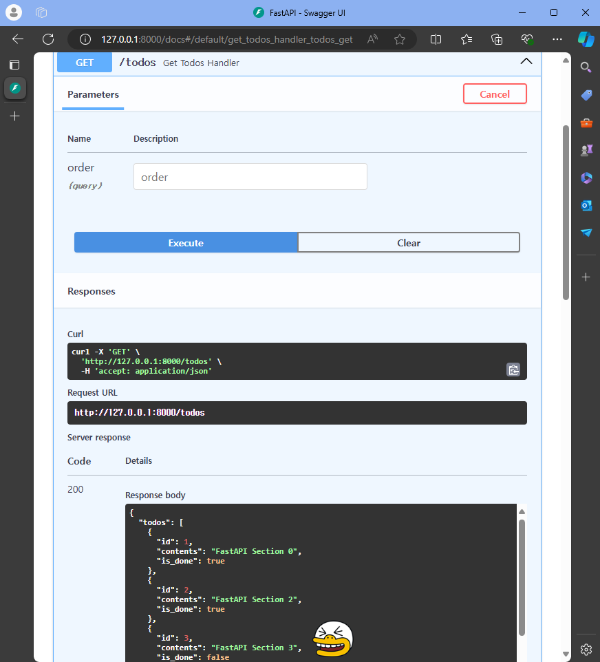 http://127.0.0.1:8000/docs 입력