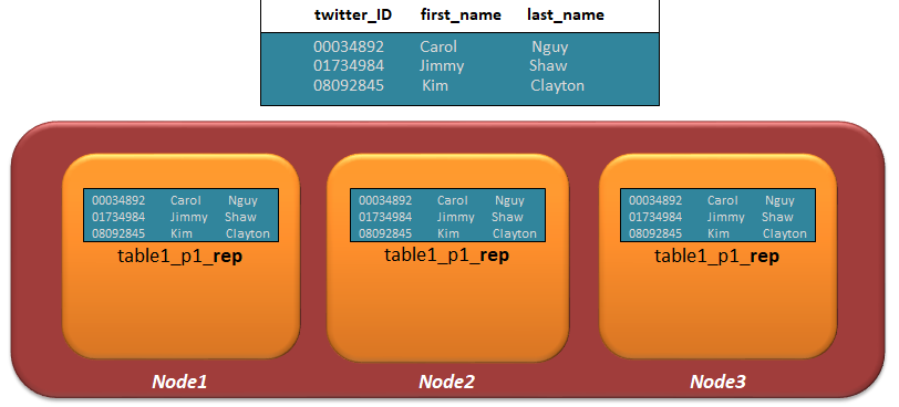 - Projection Replication이란 클러스터의 모든 노드들이 동일한 데이터 복사본을 가지고 있는 것