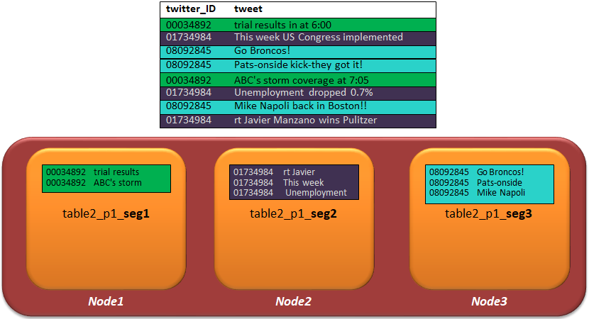 - Projection Segmentation이란 fact 테이블과 같은 큰 테이블에 대한 데이터를 클러스터 노드 전체에 고르게 분산시키는 것