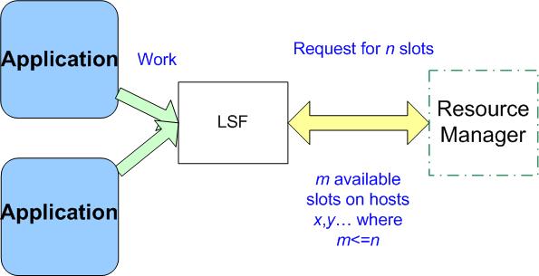 - Based on the values specified in the resource distribution plan, the resource manager returns the number of available slots (m) and the names of the hosts on which the slots reside.