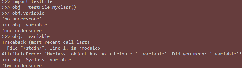 위와 같이 변수명 앞에 _를 붙였다고 해서 해당 변수에 접근하지 못하게 되진 않으나 다음과 같이 모듈을 import해서 쓰는 경우 효과가 발생