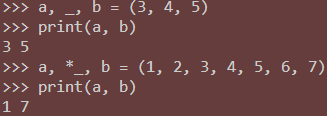 a, _, b = (1, 2, 3) # a = 1, b = 3