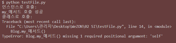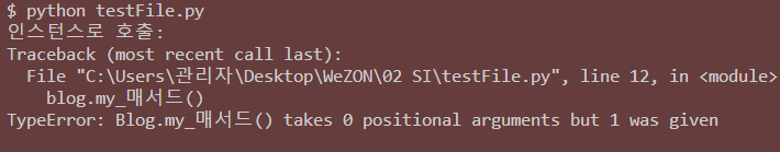 ERROR 내용: Blog.my_매서드()에 1개의 인자가 들어와야 하는데 안 들어왔다는 내용