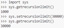 >>> sys.setrecursionlimit(n)