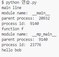 # multiprocessing 모듈은 새로운 프로세스를 시작할 때 이 코드를 재실행할 수 있으므로