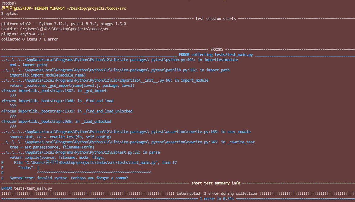File "C:\Users\관리자\Desktop\projects\todos\Lib\site-packages\anyio\_backends\_asyncio.py", line 851, in run