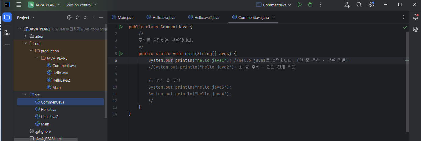 //System.out.println("hello java2"); 한 줄 주석 - 라인 전체 적용