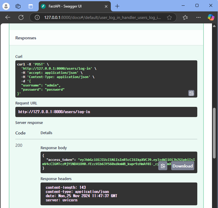 - 5 실습7 로그인 API 구현: 2024.11.16 - [Web 개발/FAST API (인프런 강의 내용)] - 5 실습7 로그인 API 구현