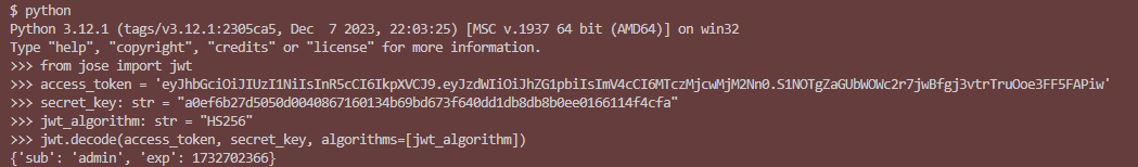 - header (auth_header)가 정상적으로 요청이 오면 그 안에 있는 credentials에서 access token이 반환됨