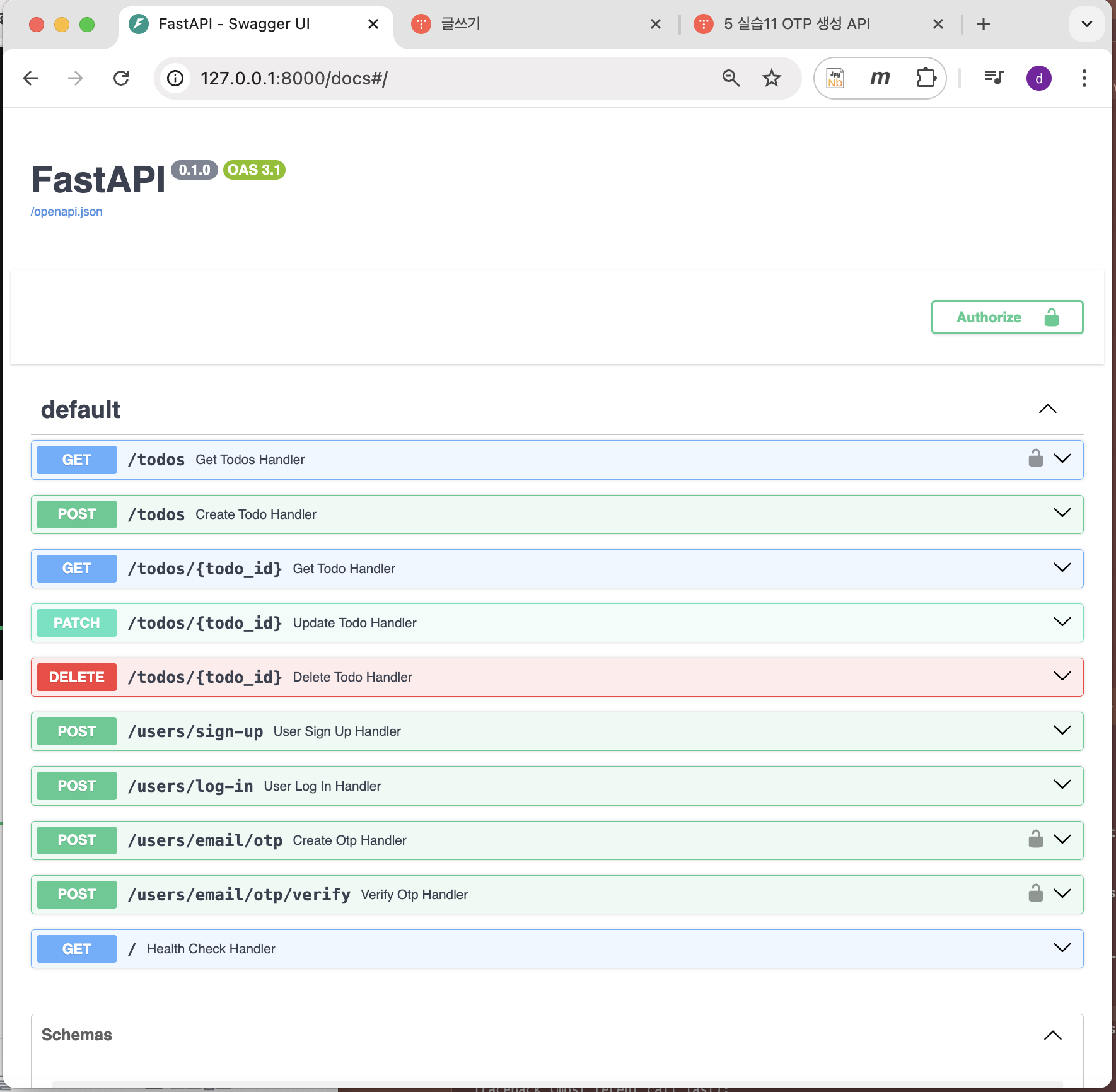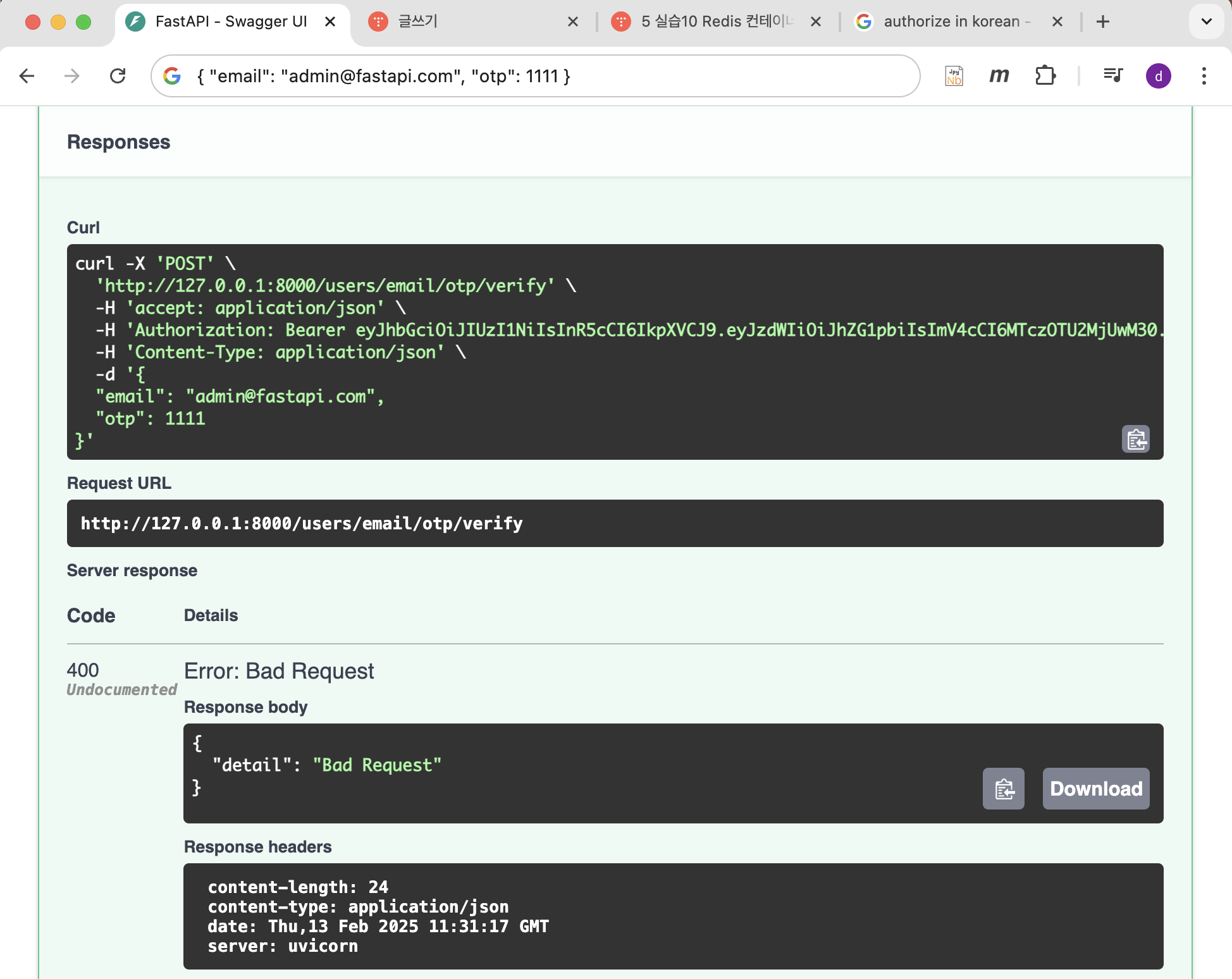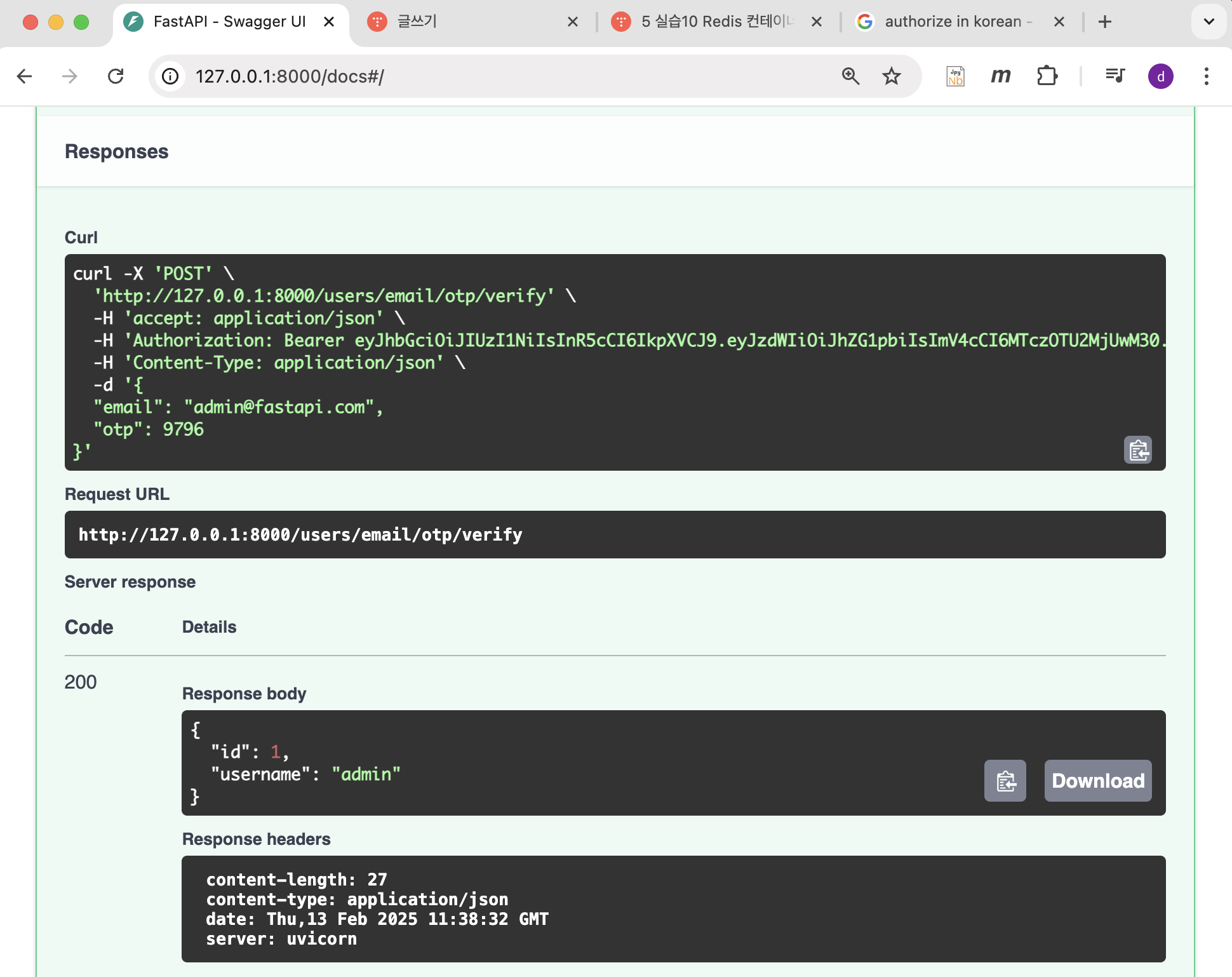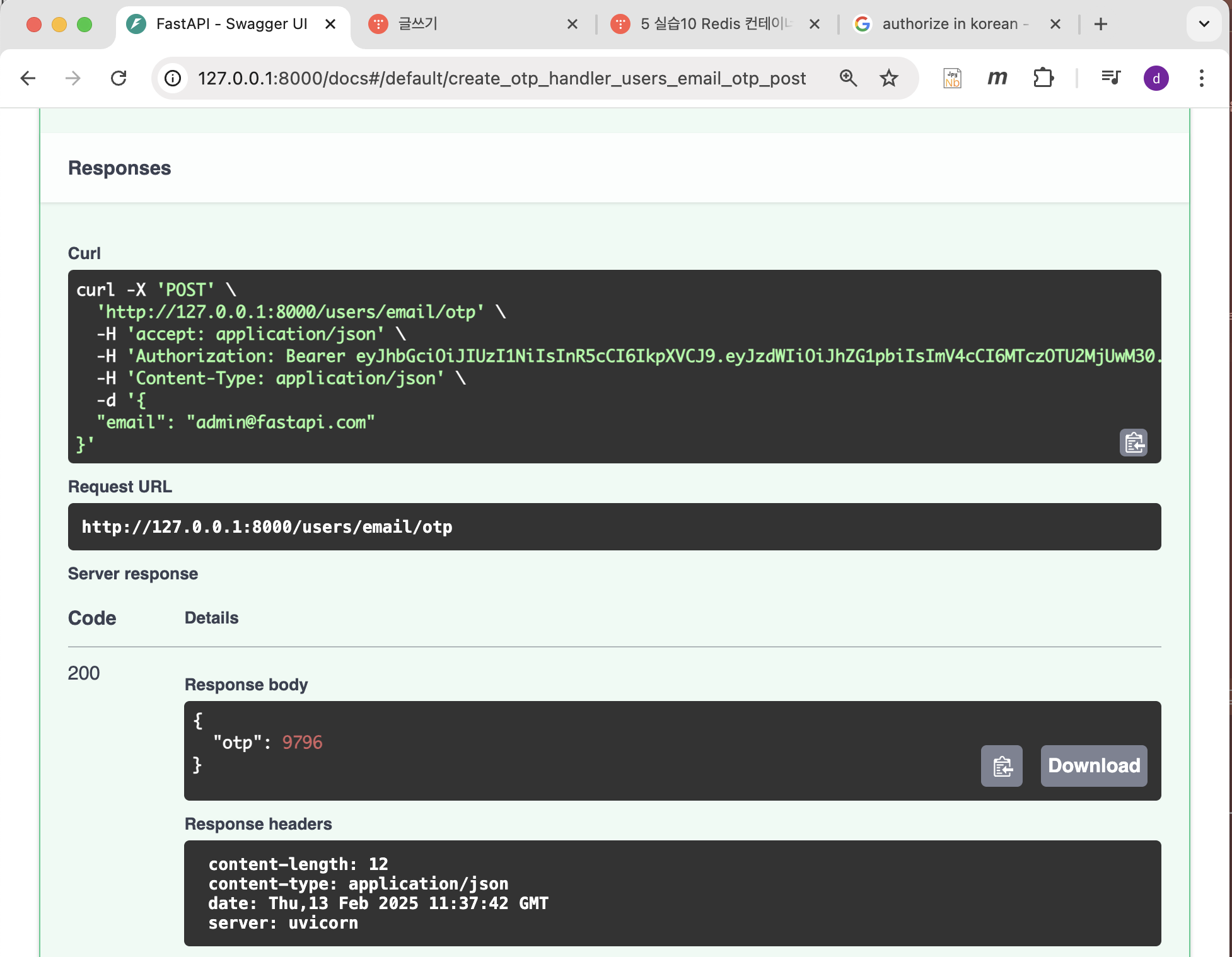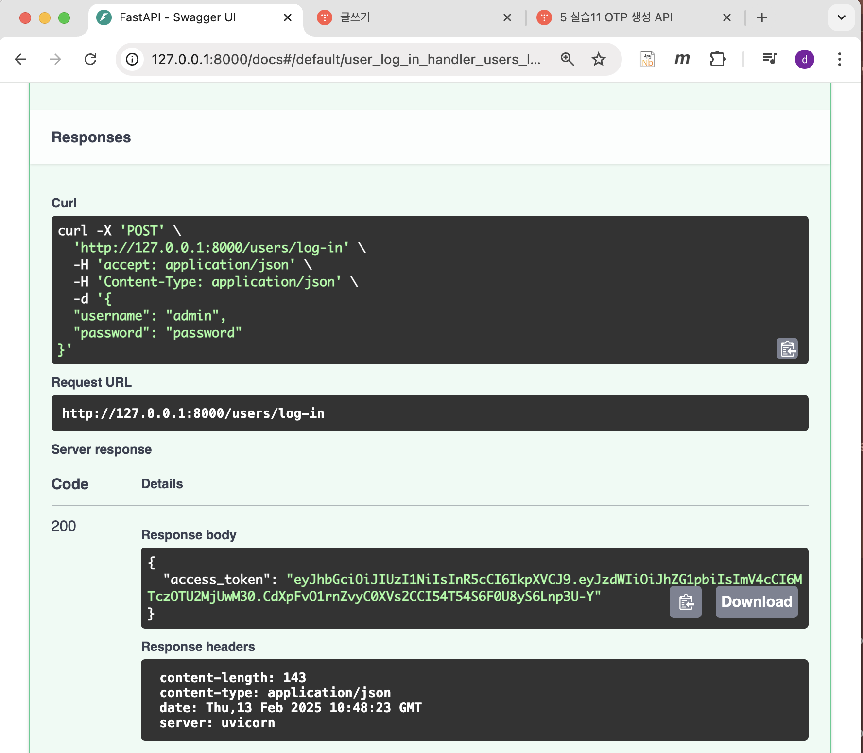 - 5 실습11 OTP 생성 API: 2025.02.10 - [Web 개발/FAST API (인프런 강의 내용)] - 5 실습11 OTP 생성 API