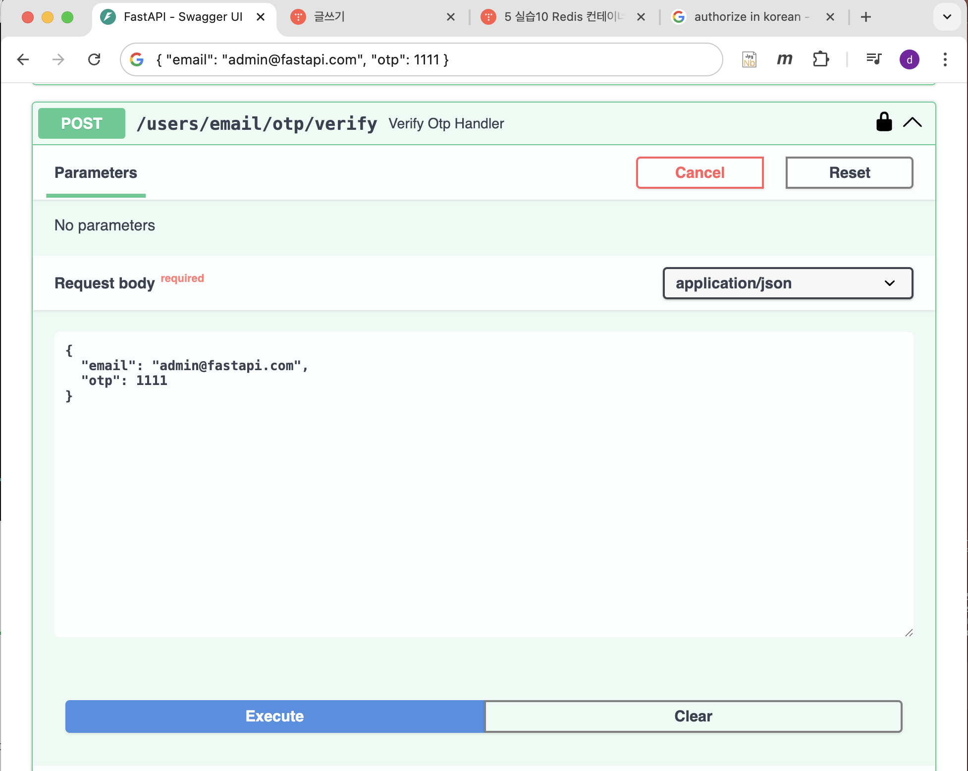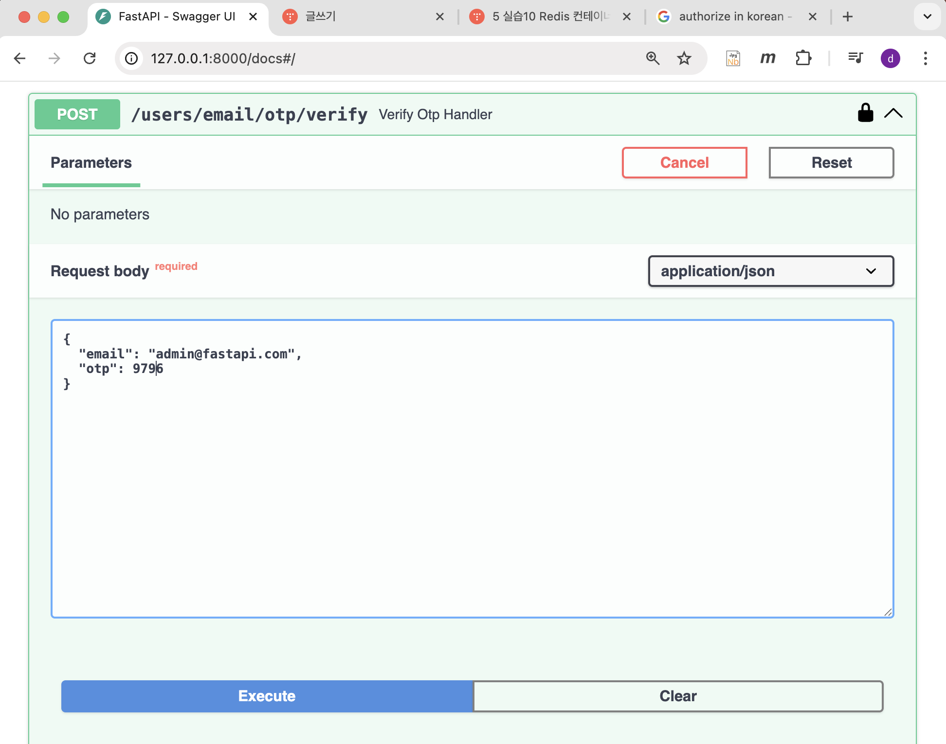 - 2. request body로 email, otp 받음