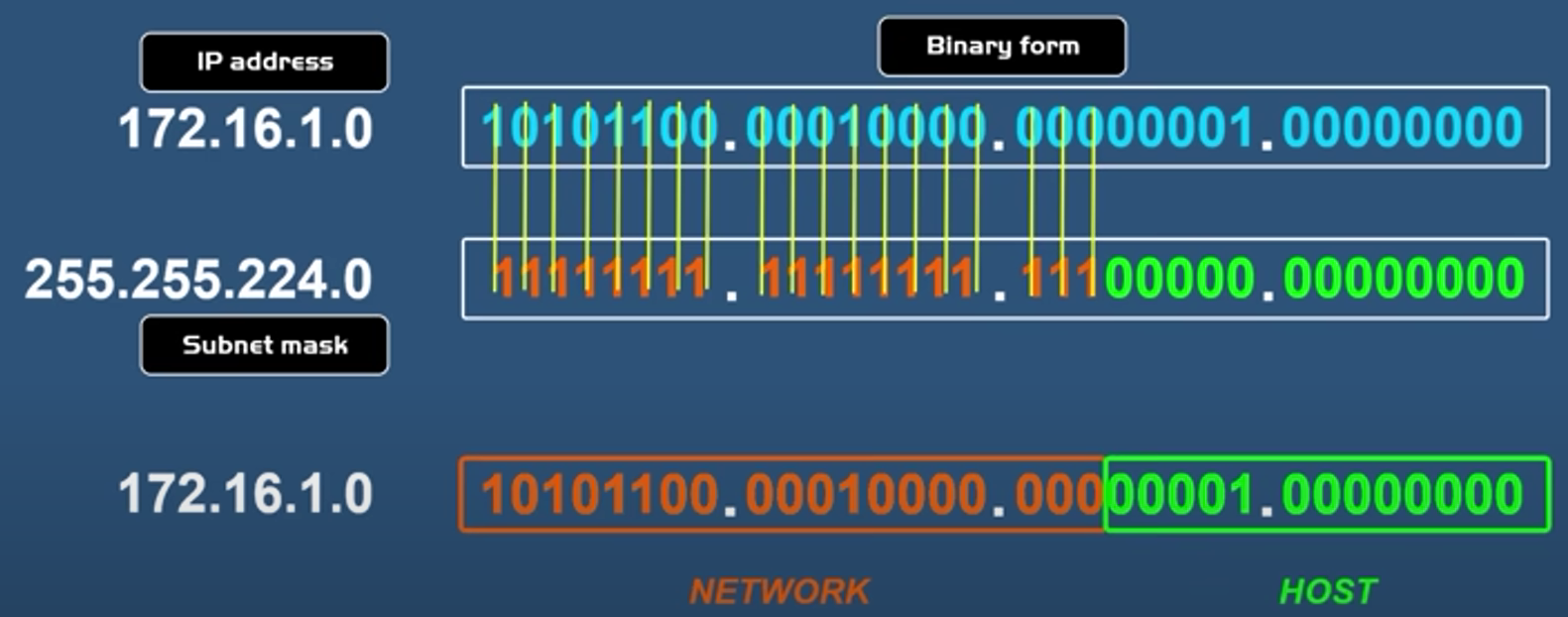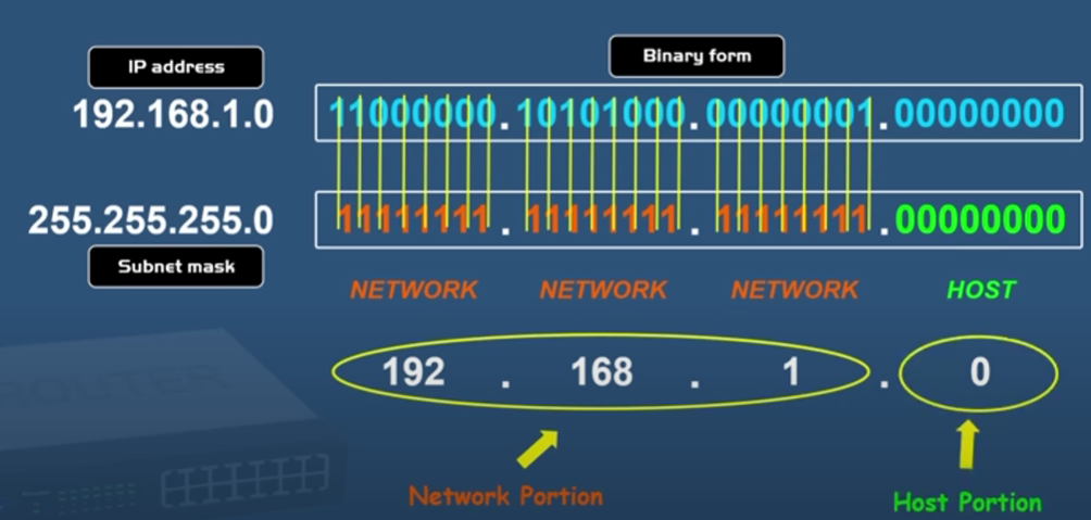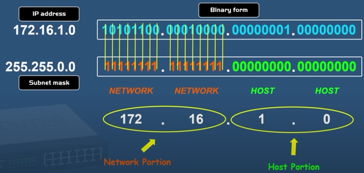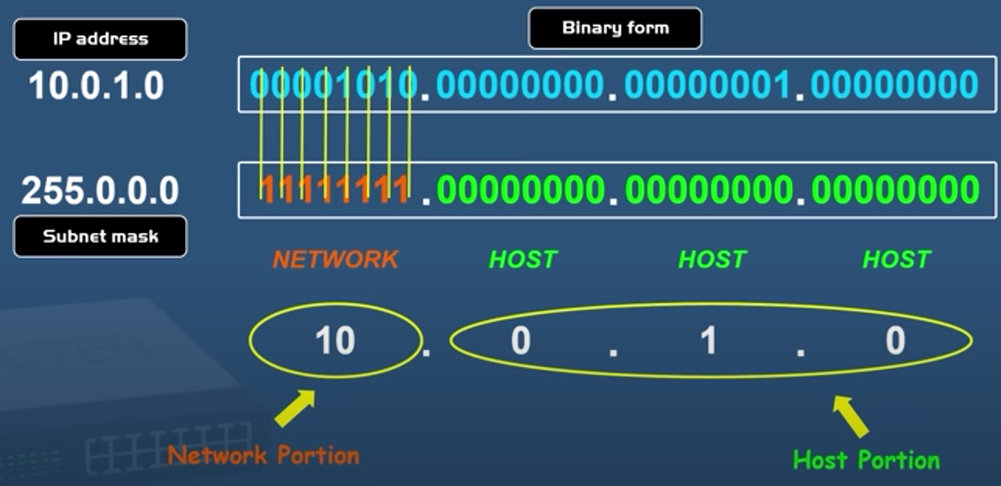 - Subnetting: the process of dividing one network into smaller networks