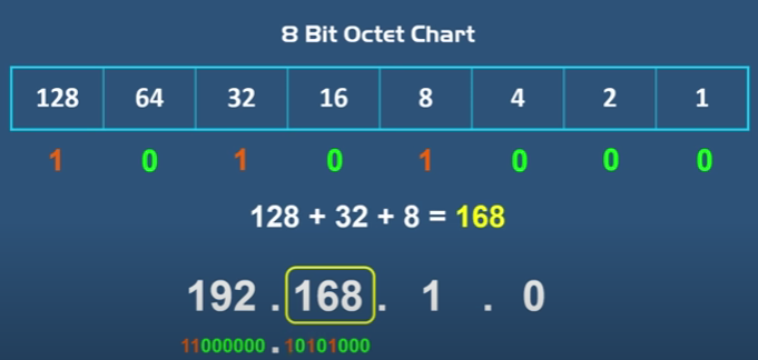 - each group of numbers that are separanted by periods is called an octet
