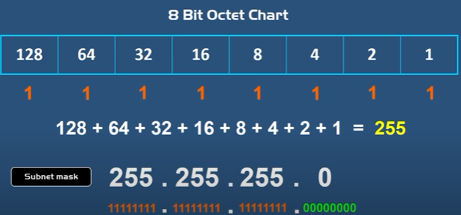 - by manipulating the 1s and 0s in the octet, can come up with a number range 0 ~ 255
