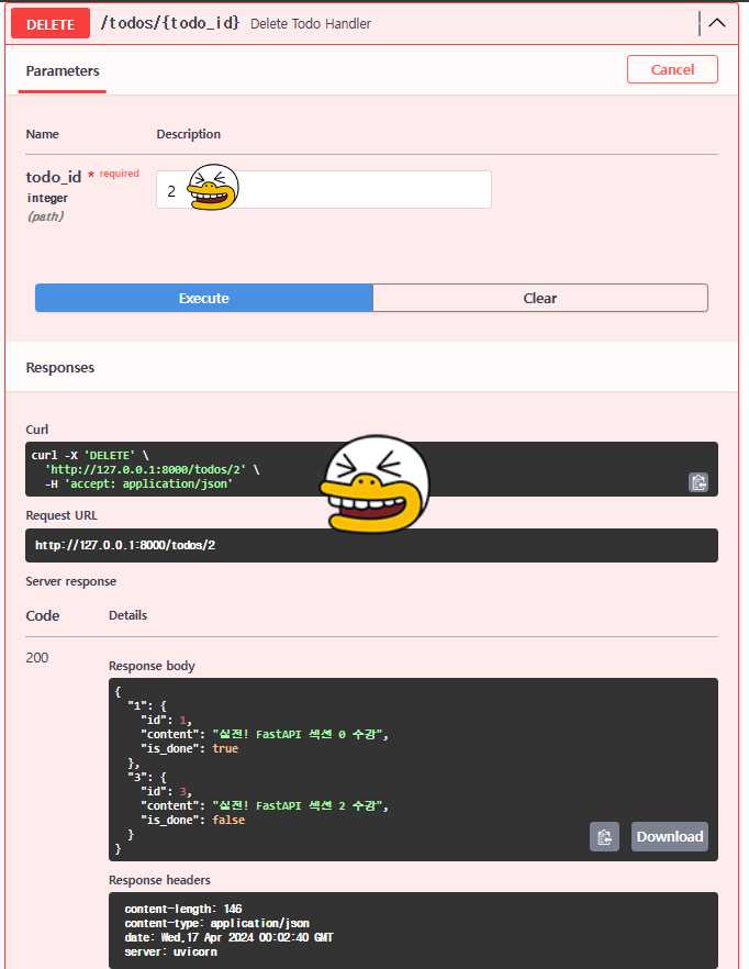 목표: DELETE Method를 이용해 기존에 있는 ToDo를 삭제하는 API 만들기